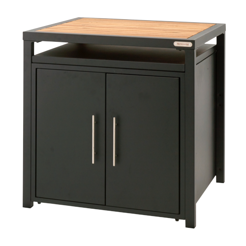 Das Kabinett bietet viel Platz für Grillzubehör wie zum Beispiel Grillbesteck oder Gewürze zum anderen bietet es wertvolle Arbeitsfläche die beim Grillen nicht fehlen darf.