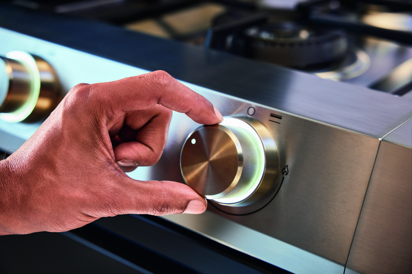 - beleuchtete Edelstahlknebel mit rutschfester Oberfläche