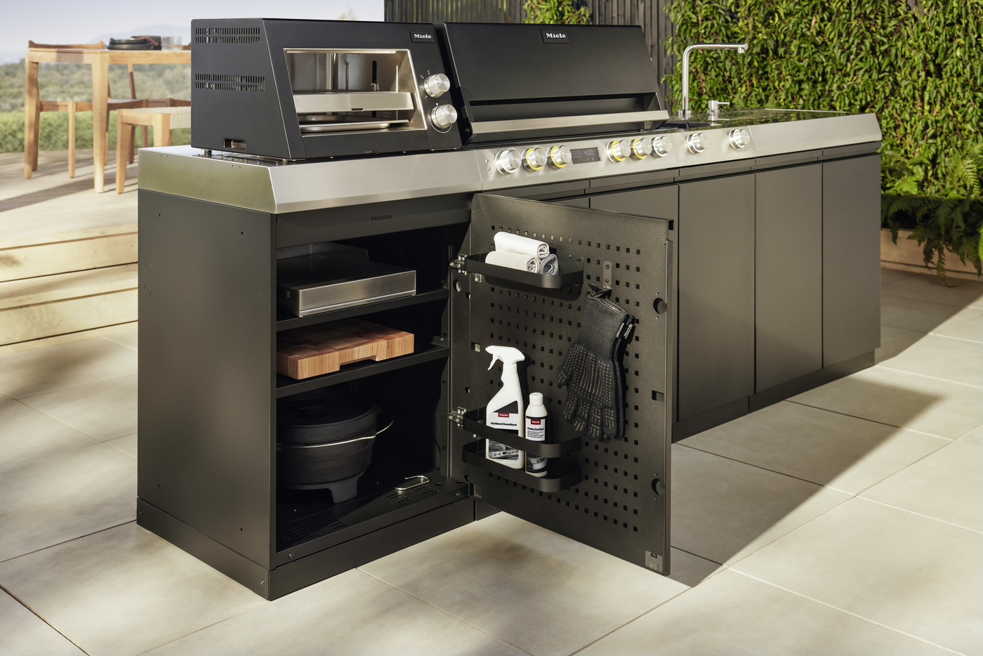 Erweitere die Möglichkeiten deiner Miele Dreams Outdoorküche mit der passenden Innenausstattung.