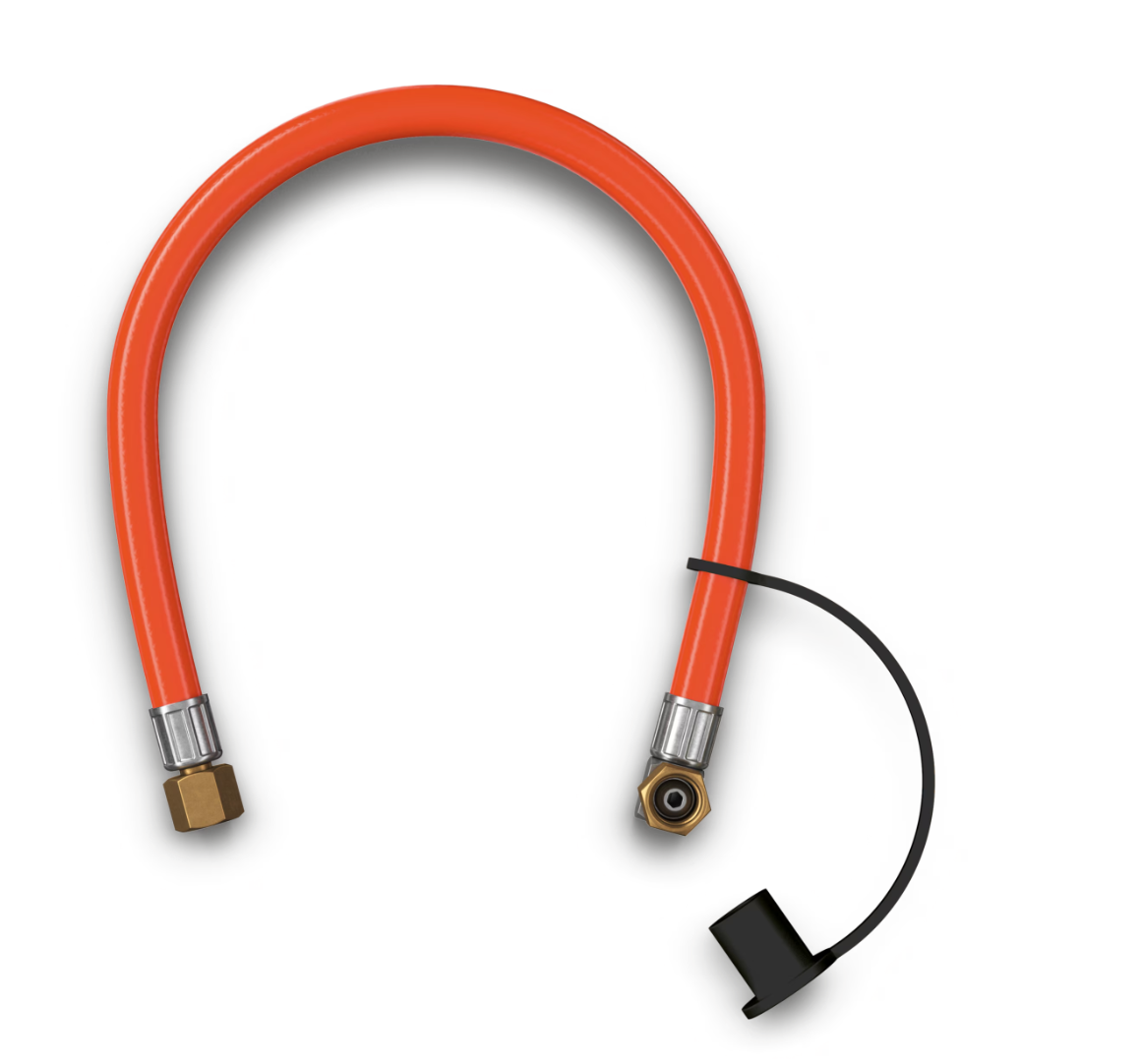 - Mit dem Gasanschluss-Schlauch verbindet er mehrere Geräte mit einer Gasflasche