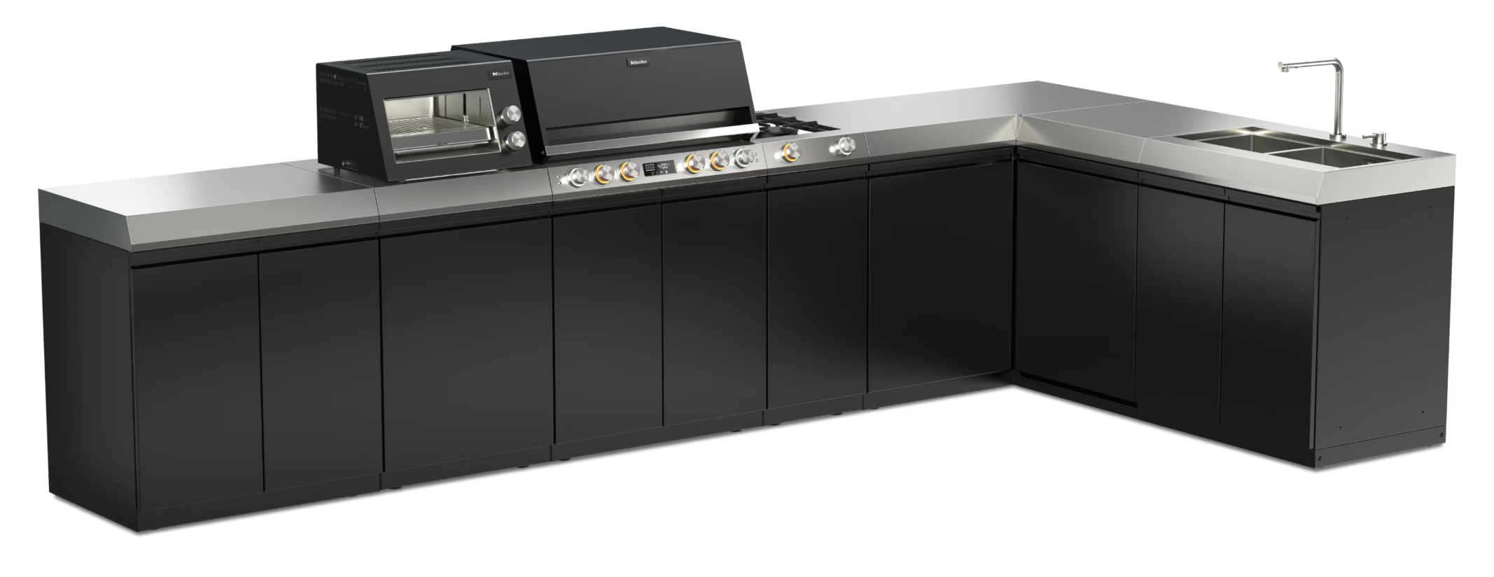 Miele Dreams Outdoor-Küche Fire Pro inkl. Store M, Store L, Cook, Cool, Wash & Corner