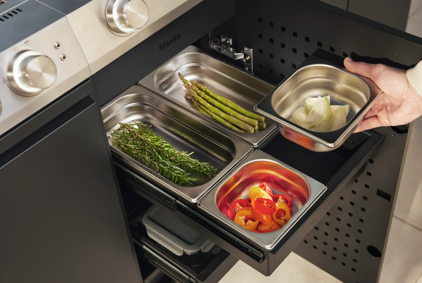 Erweitere Deine Miele Dreams Outdoorküche mit den Stauraummodulen in den Größen S,M oder L.