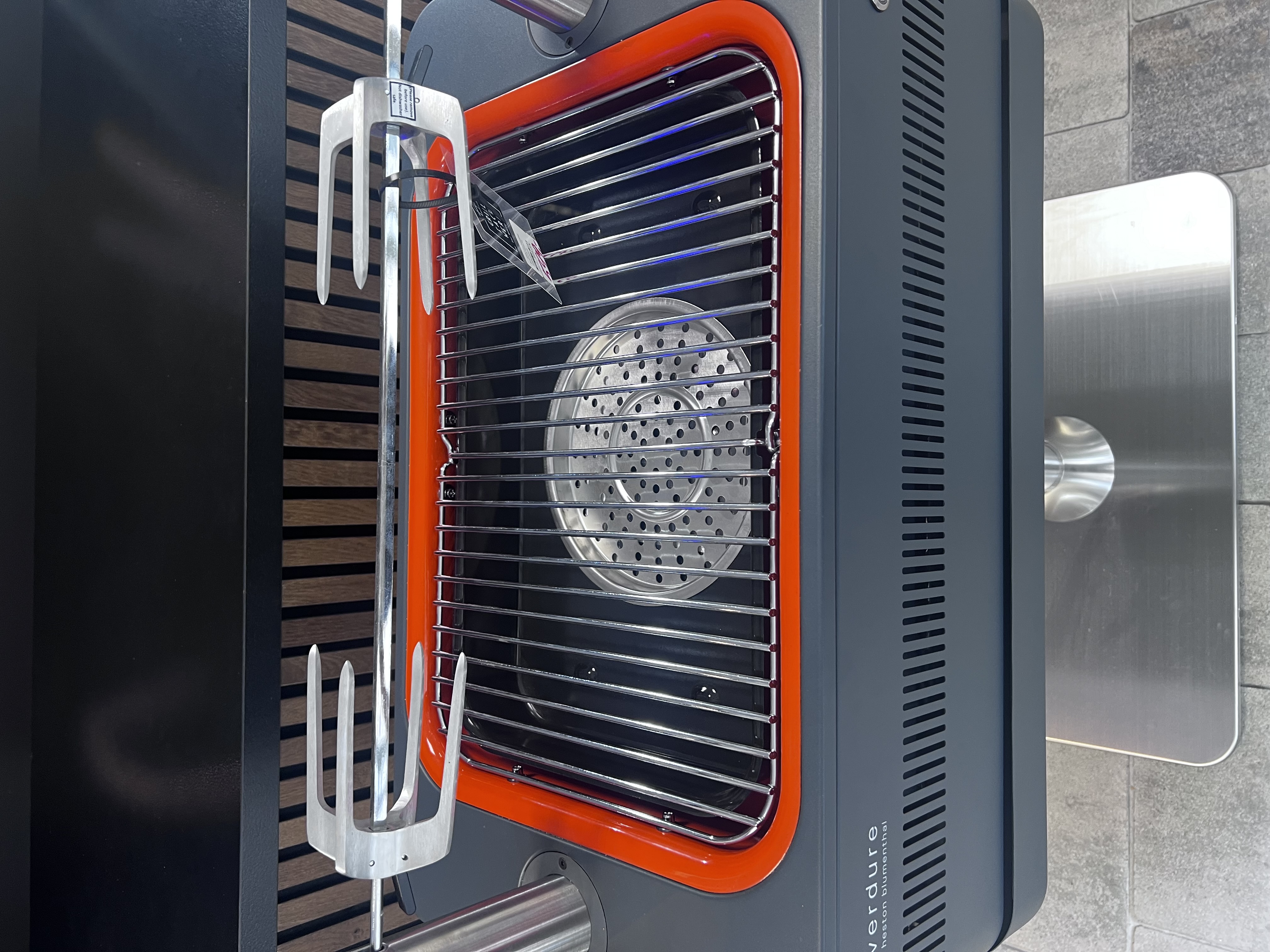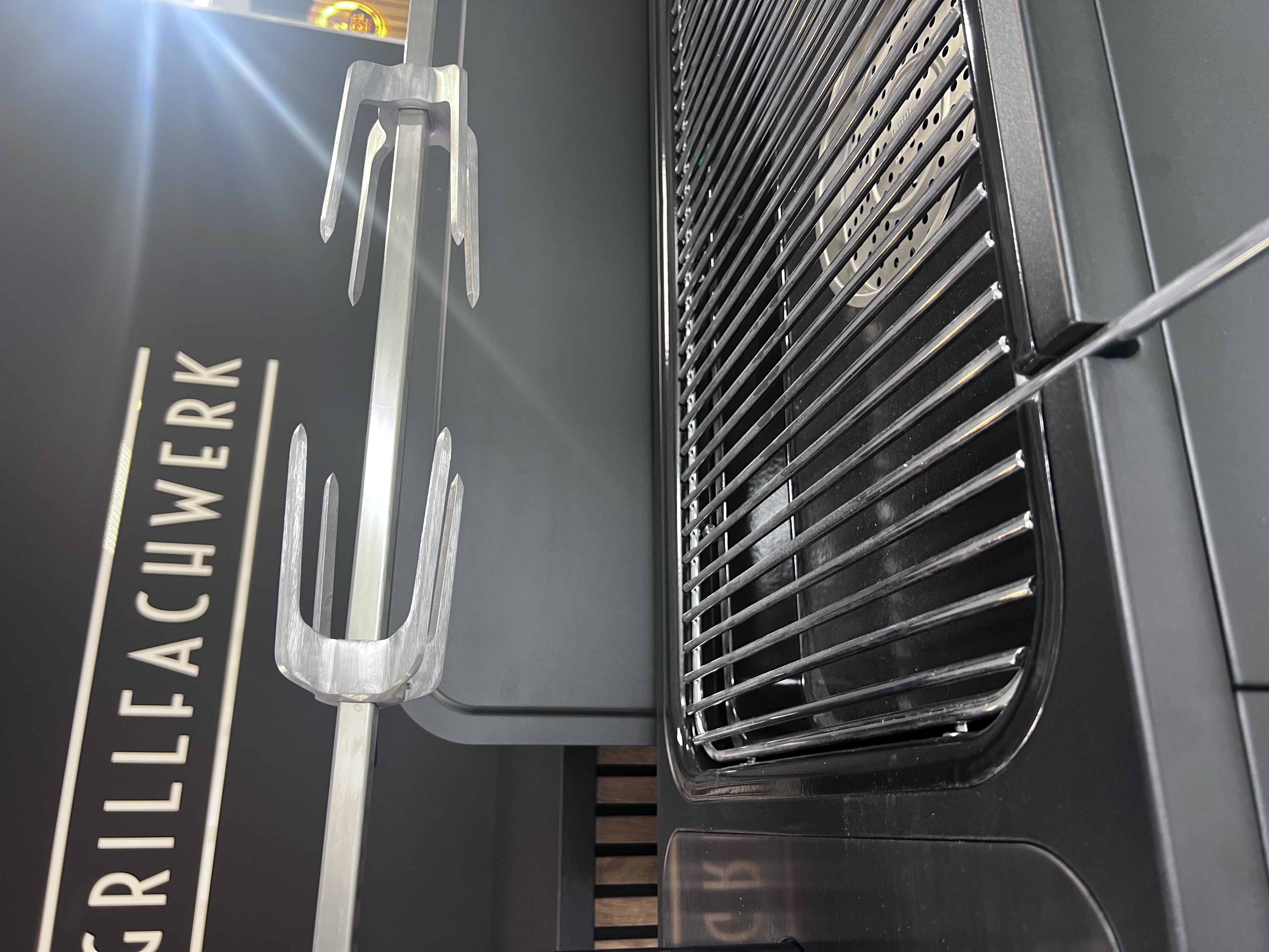 Innerhalb von 10 Minuten ist der Grill schon einsatzbereit. Der HUB II hat eine automatisch ausfahrbare Rotisserie. Sie können das ganze per Knopfdruck stufenlos einstellen.