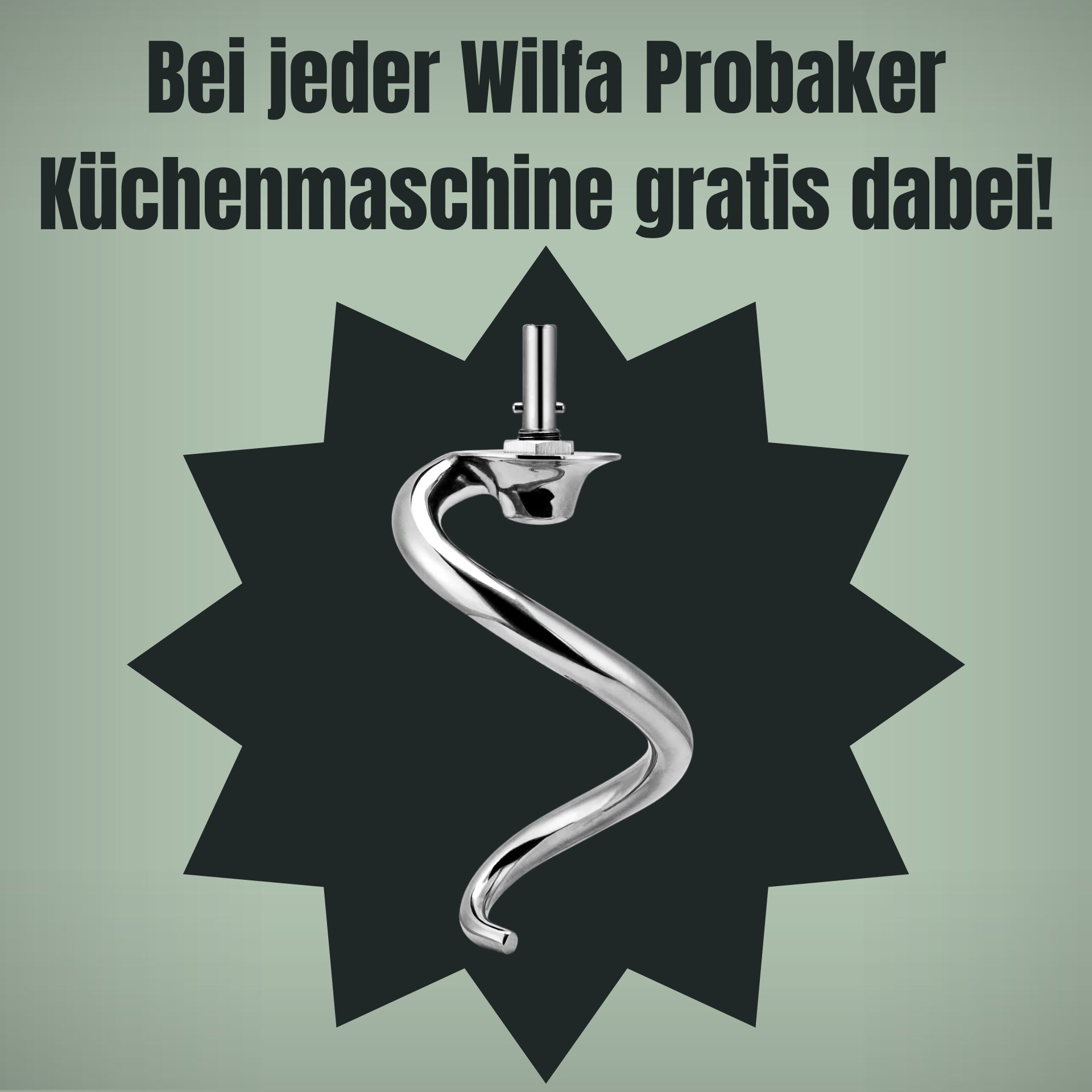 Im Kitchenpoint Sale erhälst Du zu jeder Wilfa Probaker Küchenmaschine und zu unseren Wilfa Probaker Sets den Wilfa Edelstahlknethaken im Wert von 99€ gratis dazu.