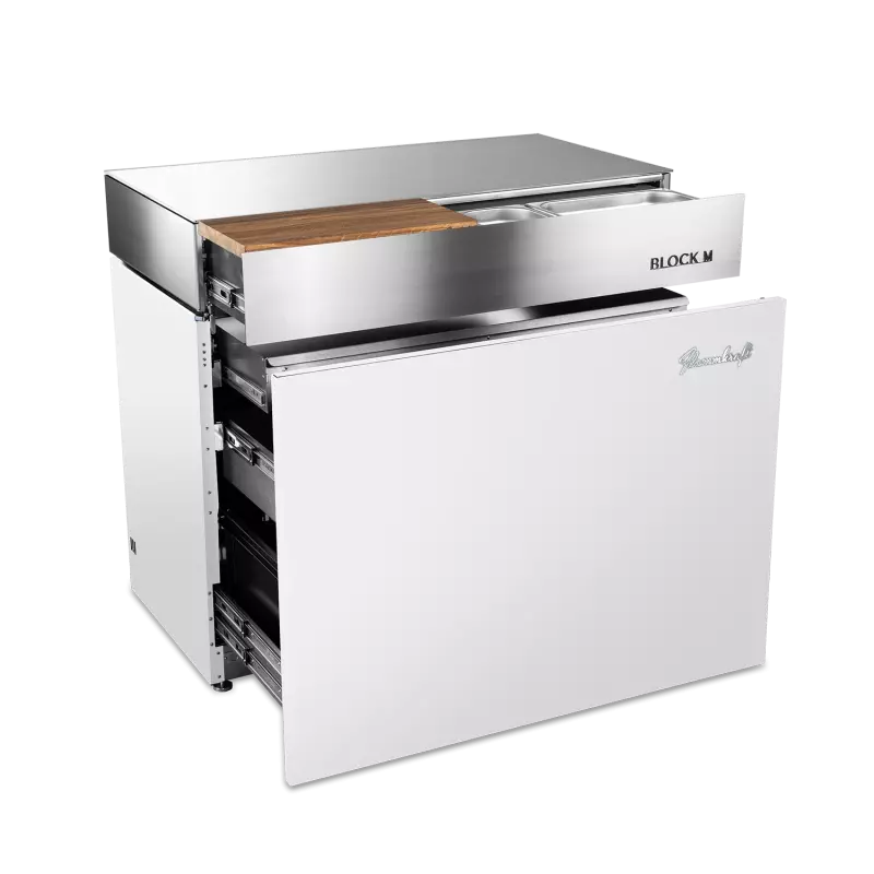 Ob als hochwertiges Outdoor Küchenmodul oder als Ergänzung zum neuen Block D, der Block M ist perfekt ausgestattet für die Vorbereitung und das Bereitstellen von Zutaten während des Grillens.
