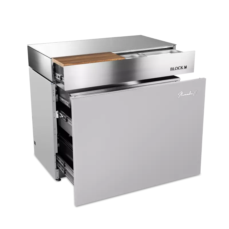 Ob als hochwertiges Outdoor Küchenmodul oder als Ergänzung zum neuen Block D, der Block M ist perfekt ausgestattet für die Vorbereitung und das Bereitstellen von Zutaten während des Grillens.