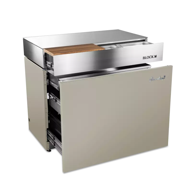 Ob als hochwertiges Outdoor Küchenmodul oder als Ergänzung zum neuen Block D, der Block M ist perfekt ausgestattet für die Vorbereitung und das Bereitstellen von Zutaten während des Grillens.