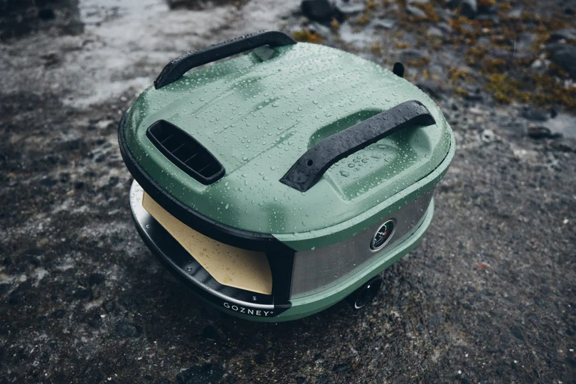 Widerstandsfähiges Aluminium-Stahl Gehäuse mit einem herausnehmbaren Pizzastein.