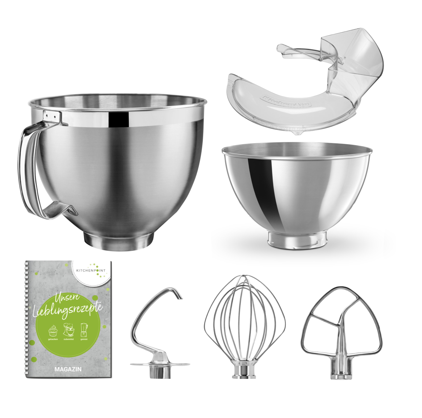 - Zwei Edelstahlschüsseln (4,8L & 3L)