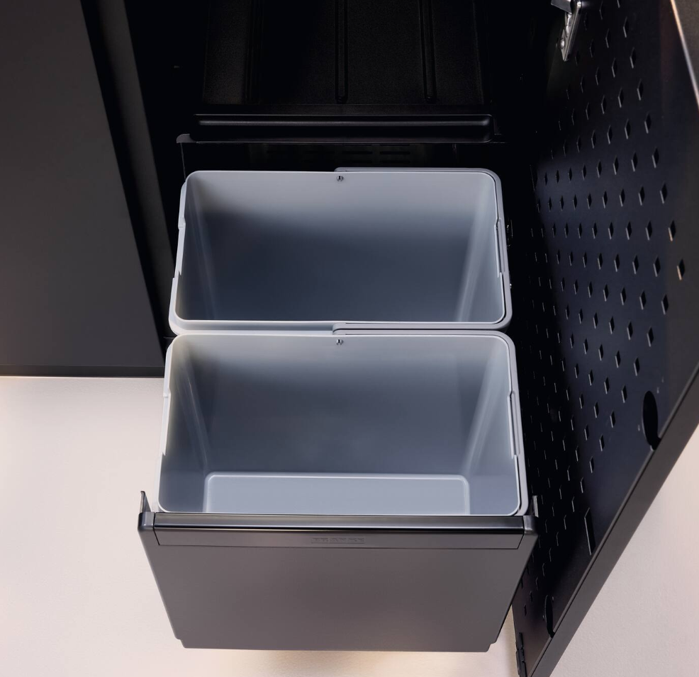 - Praktisches, herausziehbares Abfalltrennsystem mit zwei 14 Liter-Behältern