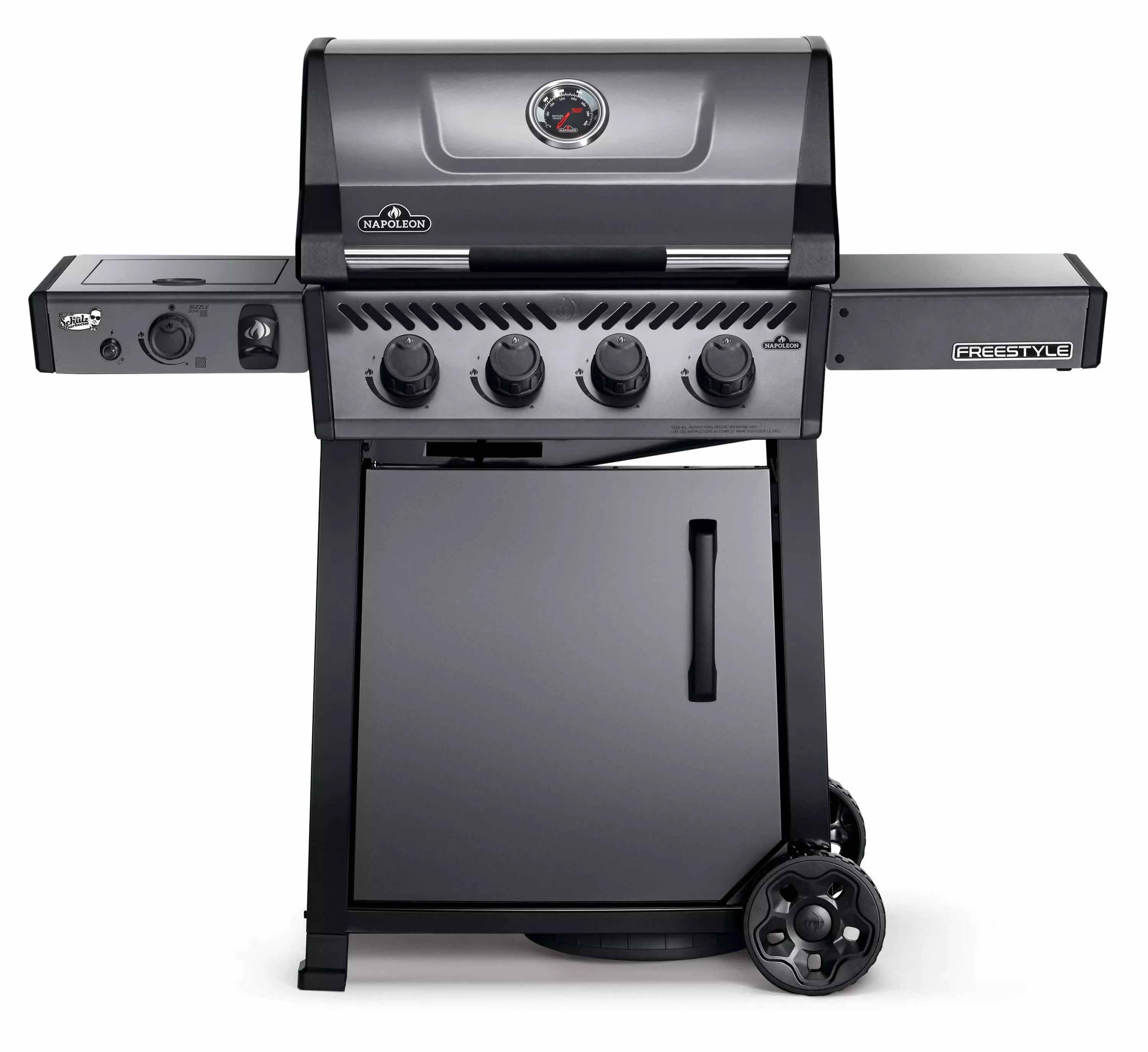 Napoleon Freestyle 425 mit Sizzle Zone Seitenbrenner - Gasgrill mit 4 Hauptbrennern und Türe
