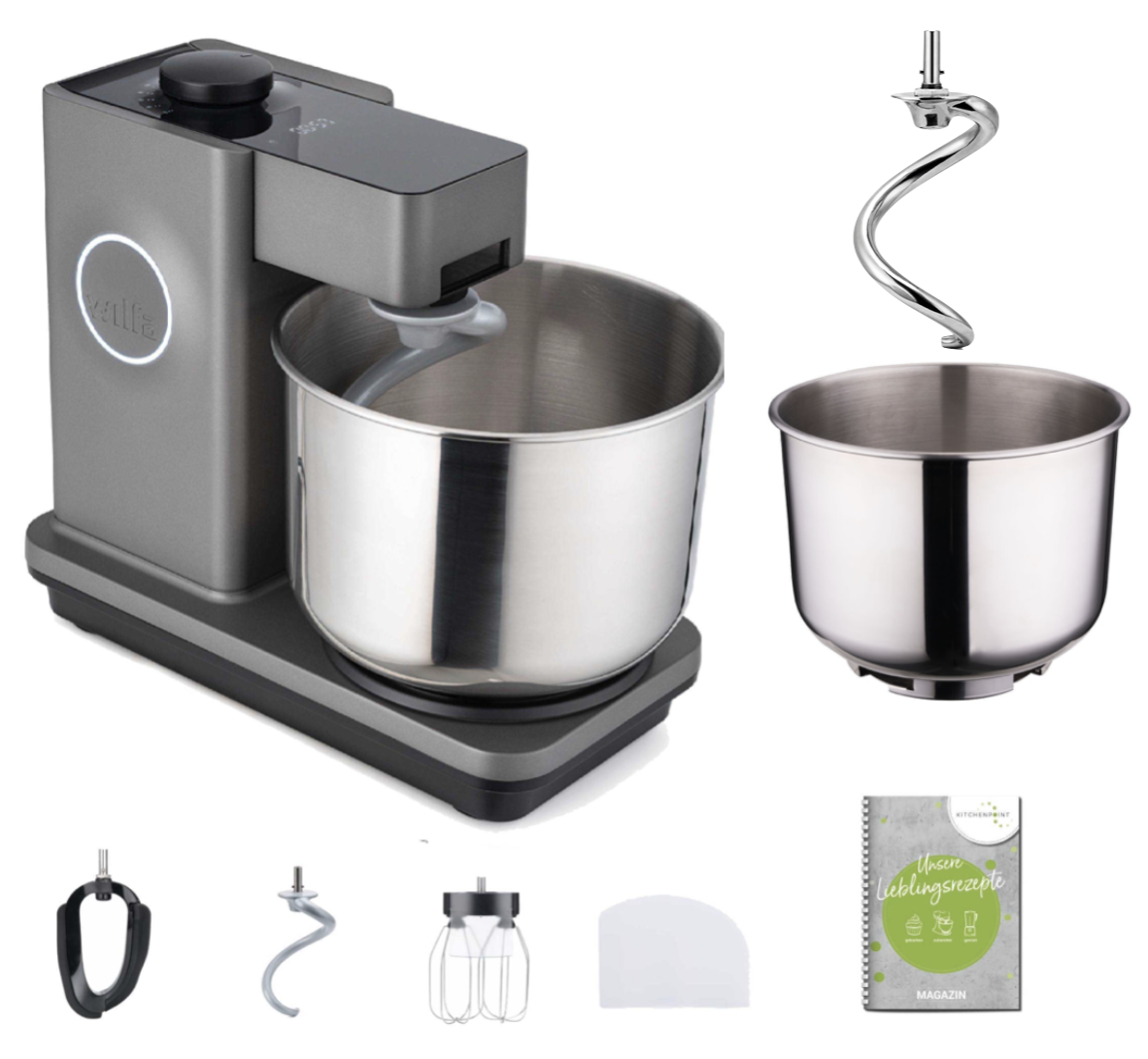 Wilfa Küchenmaschine Probaker Timer grau - Schüssel Set inkl. Edelstahlknethaken